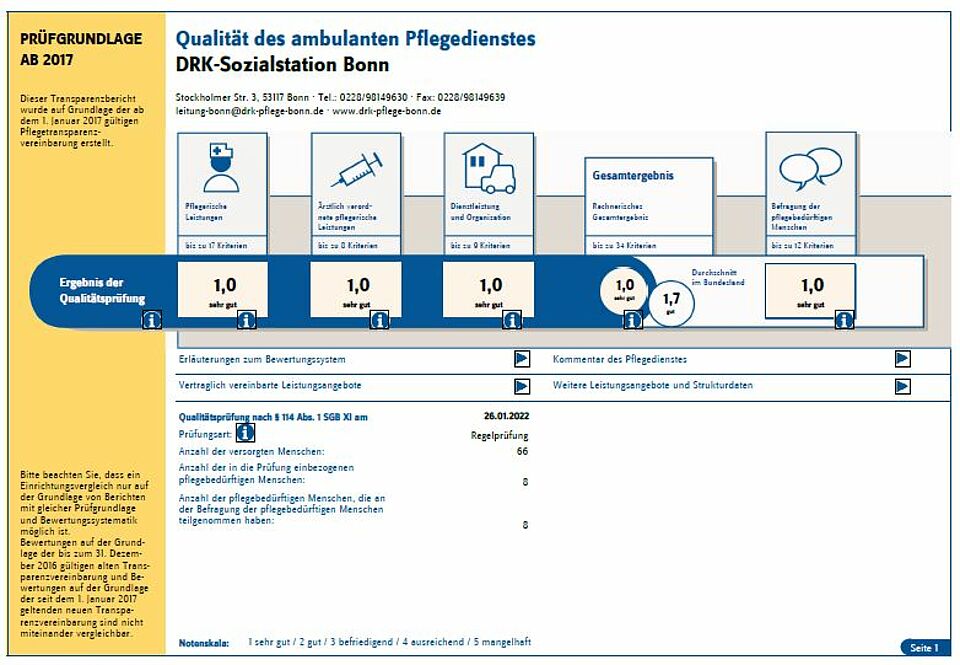 Mit einer Gesamtnote von 1,0 bescheinigt der Medizinische Dienst der Krankenkassen der DRK-Sozialstation Bonn eine hervorragende Qualität in der Pflege. Im